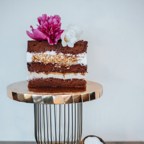 Coconut milk, cherries, coconut, eggs, buckwheat flour, cocoa, dark chocolate, Himalayan salt, sweetener: erythrol.