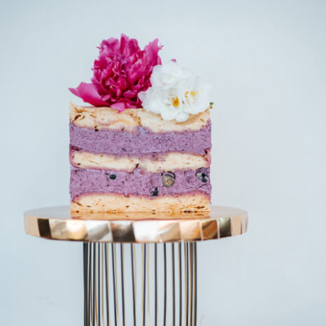 Coconut milk, eggs, berries (blueberries, raspberries and, depending on availability, blackberries), buckwheat flour, lemon juice, agar, sweetener: erythrol.