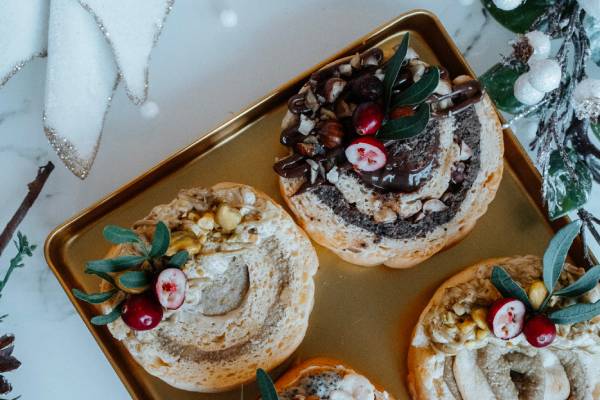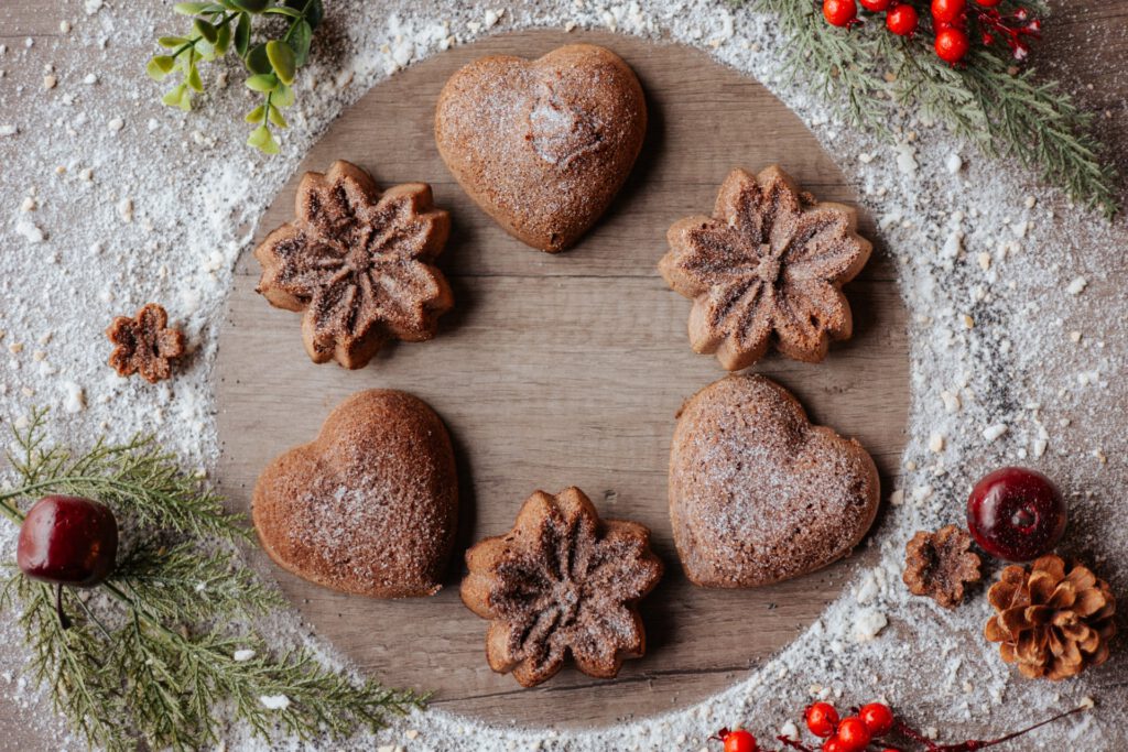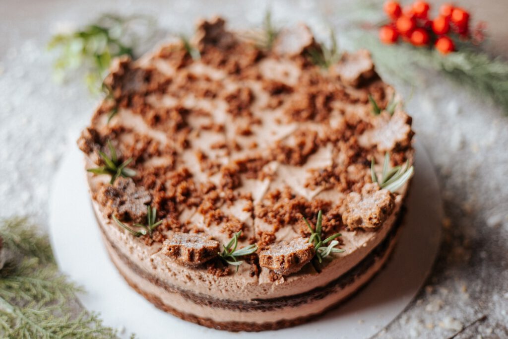 Avocado, almond flour, coconut drink, almond drink, vegan butter, cacao, carob, gingerbread spice, erythrol
